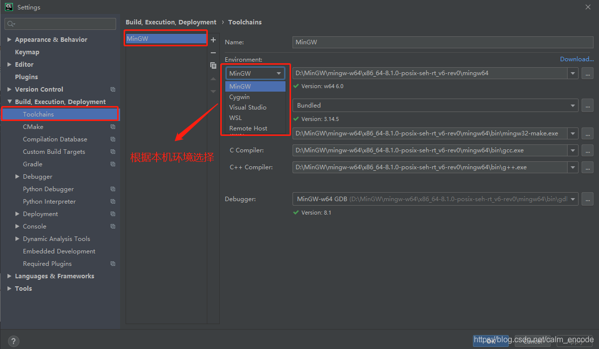 设置中添加MinGW编译工具