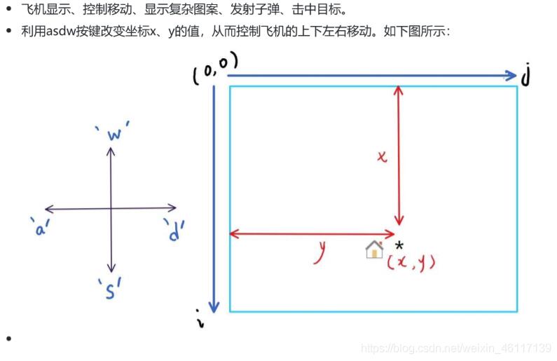 outtextxy(555, 240, _T("① 按下 w a s d 移动飞机。"));