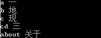 char s[][100]={"a 一","b 地","c 现","cd 三","about 关于"}; //将字符串存入数组