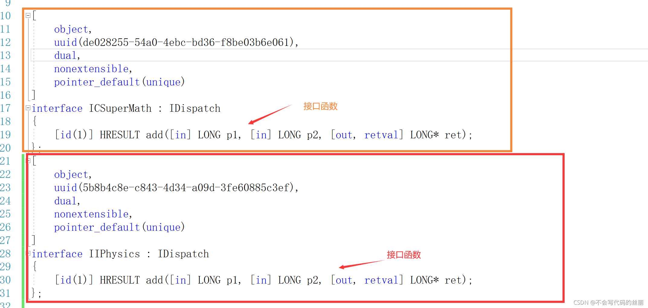 com使用idl文件去定义dll函数或者接口,之后用midl编译器生产对应的头文件,开发者再利用其去实现接口。