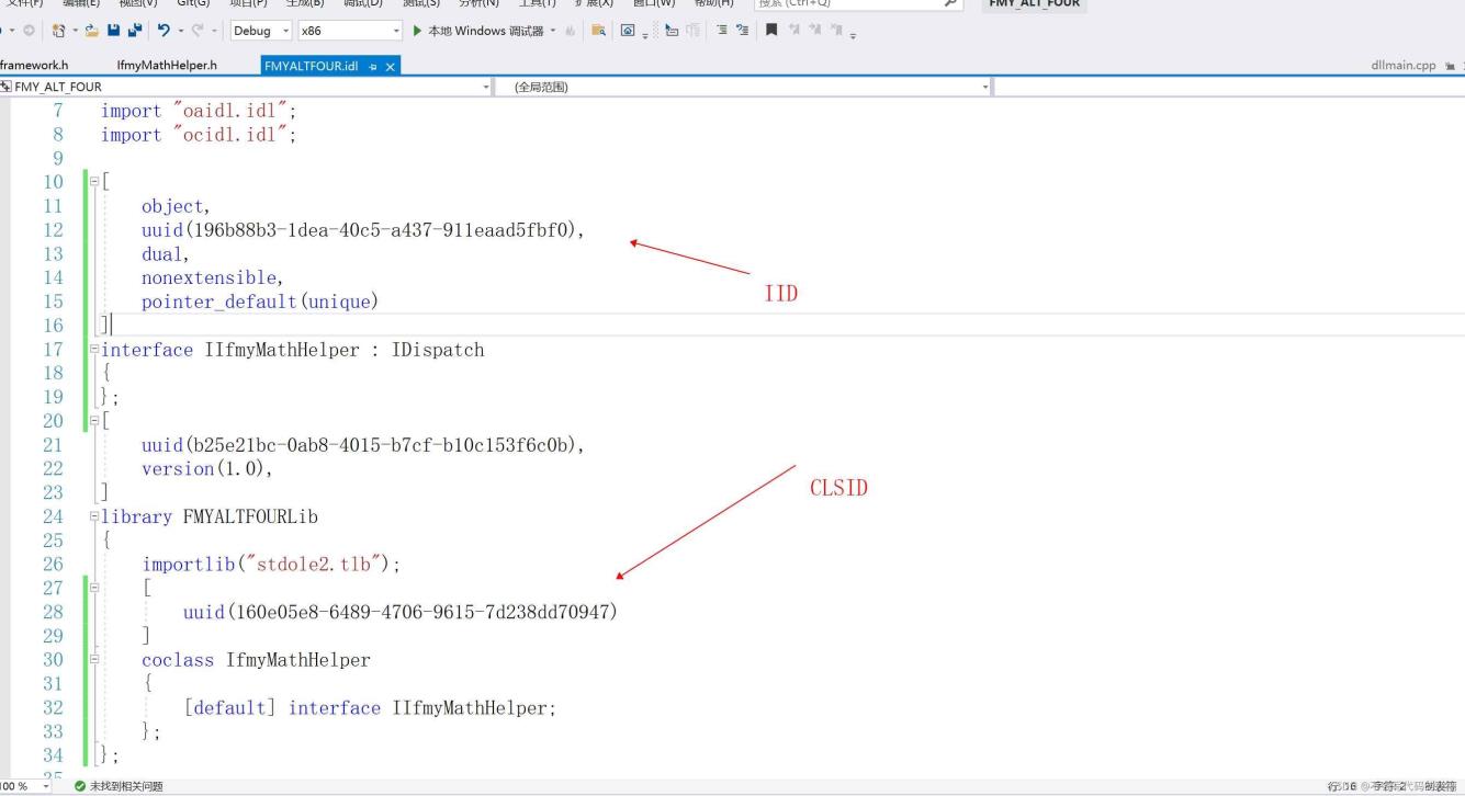 使用ATL编写一个com共享dll库 使用管理员权限运行vs(编译dll会自动调用regsvr32注册到注册表,但是需要权限)