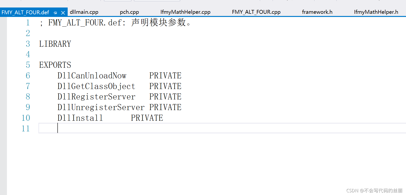 上面几个函数在你创建atl工程的def文件可以看到.