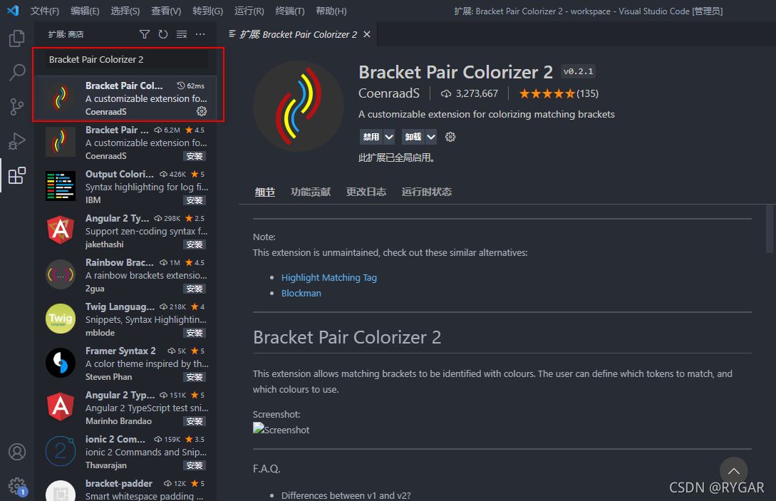 2.8、Bracket Pair Colorizer 2插件