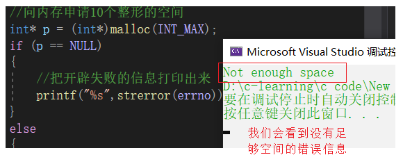 所以为了防止没有开辟动态内存成功就需要做个判断