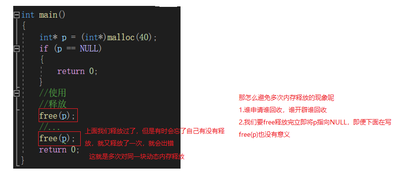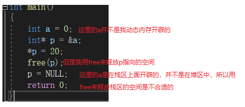 1.如果参数 ptr 指向的空间不是动态开辟的,那free函数的行为是未定义的。