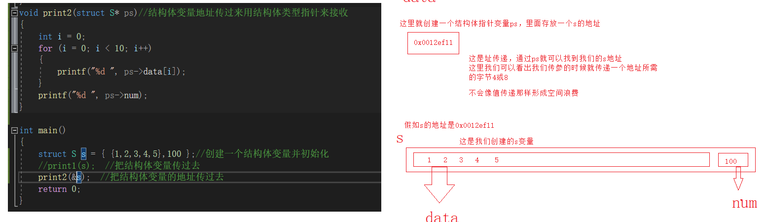 2.如果传递一个结构体对象的时候,结构体过大,参数压栈的的系统开销比较大,所以会导致性能的下降。