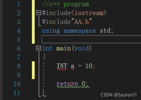 INT a会报错,因为我们只引入了头文件,没有使用里面的名称空间。