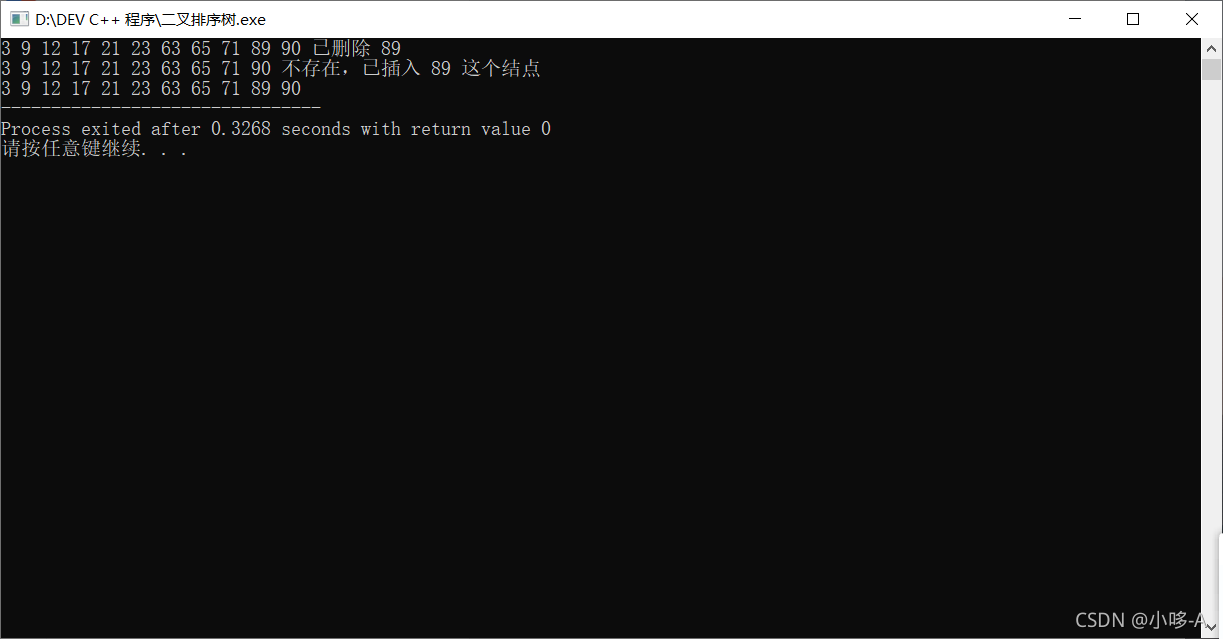 以上就是快乐草丛最近收集整理的关于C语言二叉排序树的创建,插入和删除的全部内容,更多相关C语言二叉排序树内容请搜索靠谱客的其他文章。