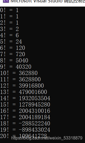 打印出数字一到数字20的阶乘