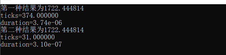 duration = ((double)(stop - start)) / CLK_TCK / MAXK;//计算单次运行时间