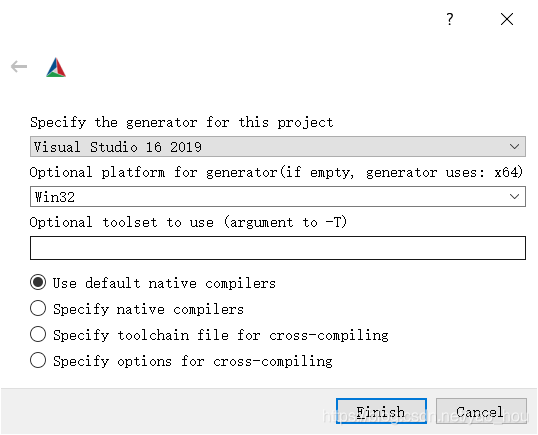 添加代码路径和生成后的目录,点击configure, 我编译的是win32版本