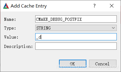 增加一个编译选项 CMAKE_DEBUG_POSTFIX,类型为STRING, value为 _d(这个随便写,只是为了区分debug和release的