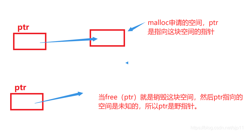当我们去malloc一块空间时,就会返回这个空间的指针去管理这块空间,当这块空间释放(销毁)掉时,但指针依然还在,指针指向的空间就未知的,就为野指针,所以我们释放一块空间时,我们需要把指针置为空,如ptr=nullptr。