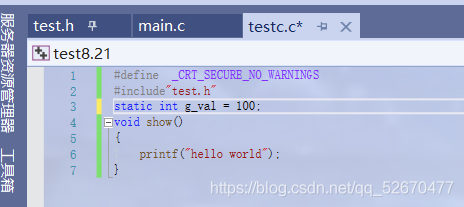 static修饰全局变量,代表该变量只能在本文件内被访问,不能在其他文件直接访问。