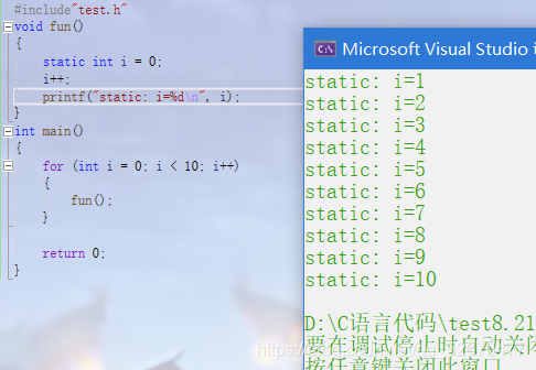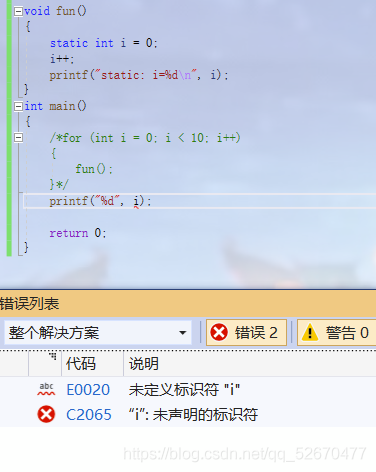 在这里fun函数结束后,变量i并没有被释放,它的生命周期是全局周期。
