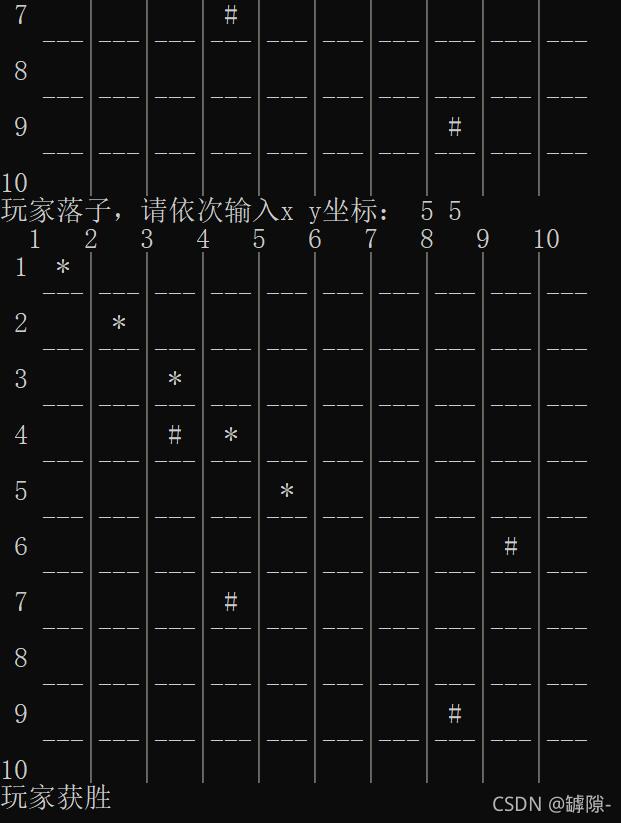 case 2:printf("游戏模式2开始!(注意:竖为x轴,横为y轴)n"); ; game2(board, ROW, COL); break;