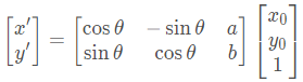 二维图像一般情况下的变换矩阵(旋转+平移),当我们只需要平移的时候,取 θ 的值为0,a和b的值就代表了图像沿x轴和y轴移动的距离;其中原图