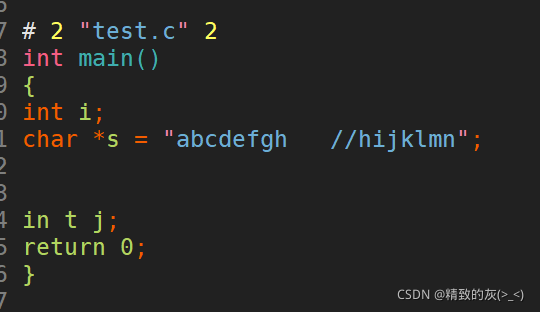 由于被替换成了空格,所以in t j这句话是无法编译的。