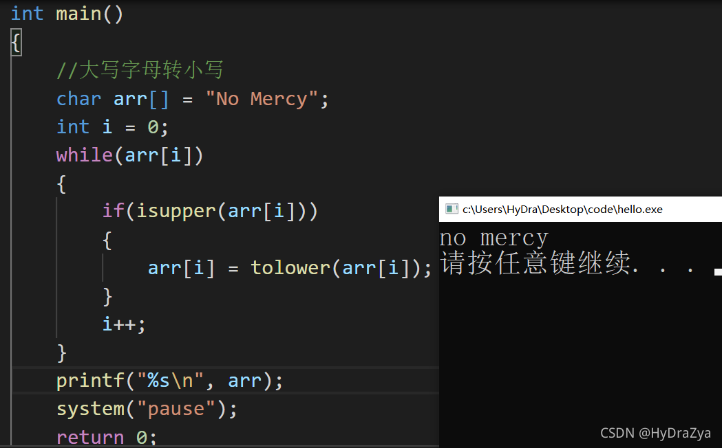 int tolower ( int c ); //tolower 转小写字母 int toupper ( int c ); //toupper 转大写字母