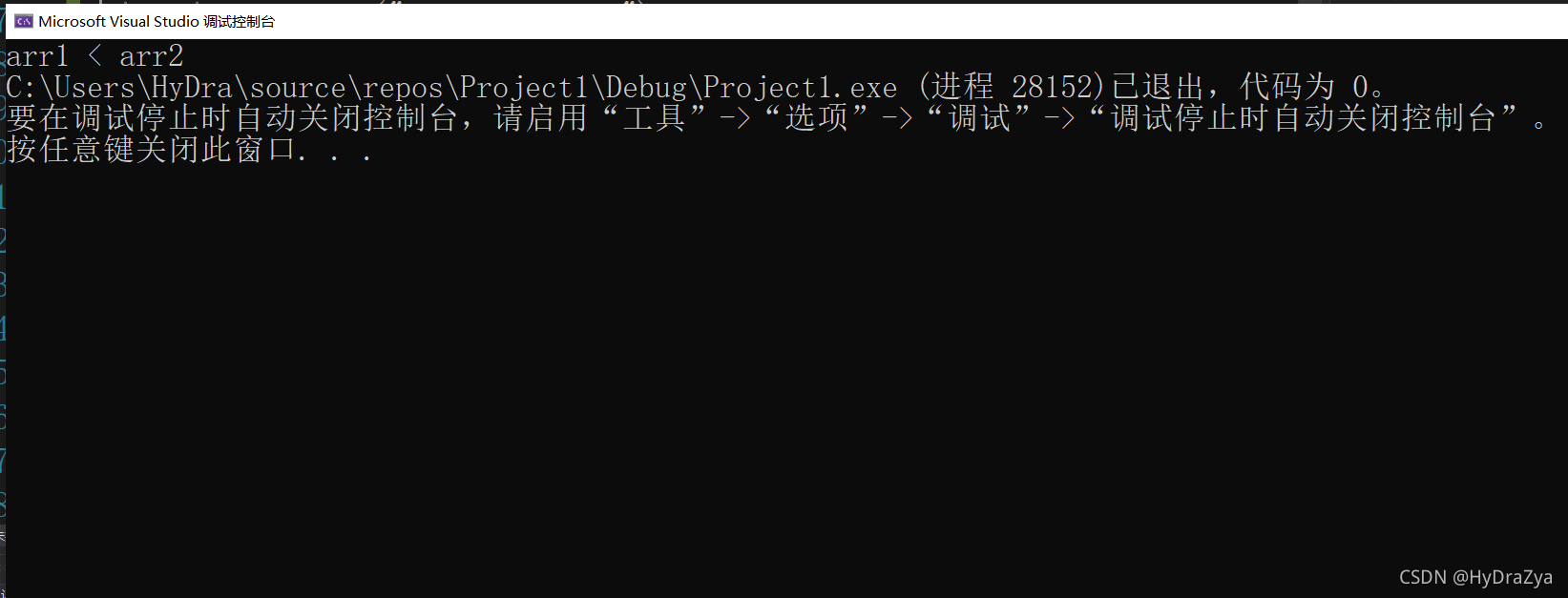 printf("arr1 < arr2");