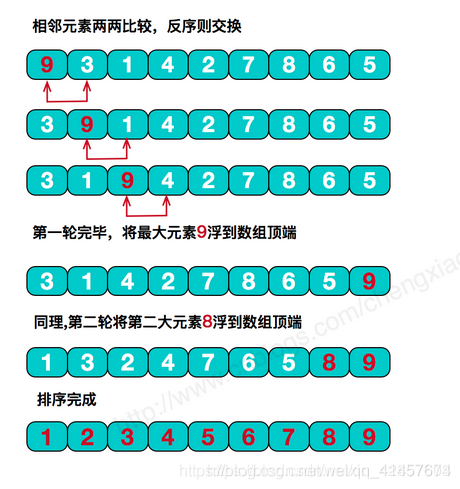 主要思想:相邻的两个元素进行比较