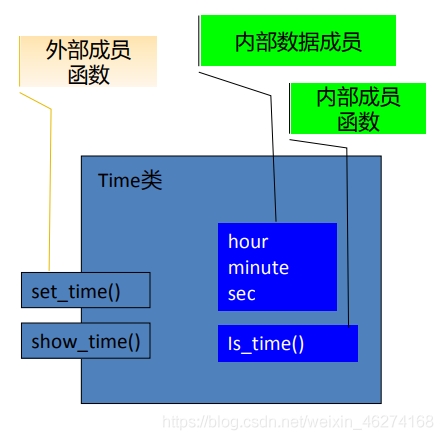 公用成员函数是用户使用类的公用接口 (public interface), 或者说是类的对外接口. 在类外不能直接访问私有数据成员, 但可以通过调用公用成员函数来引用甚至修改私有数据成员.
