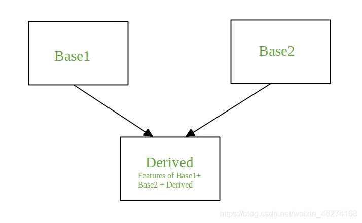 多重继承 (multiple inheritance): 一个派生类有两个或多个基类, 派生类从两个或多个基类中继承所需的属性. C++ 为了适应这种情况, 允许一个派生类同时继承多个基类. 这种行为称为多重继承.