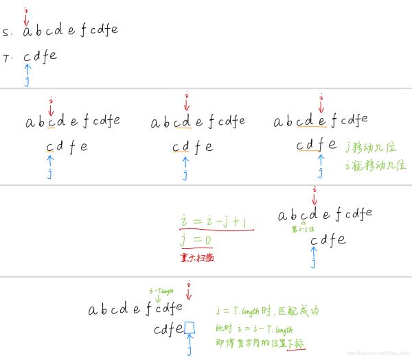 if (j == T.length) return i - T.length; //匹配成功,则返回该模式串在主串中第一次出现的位置下标