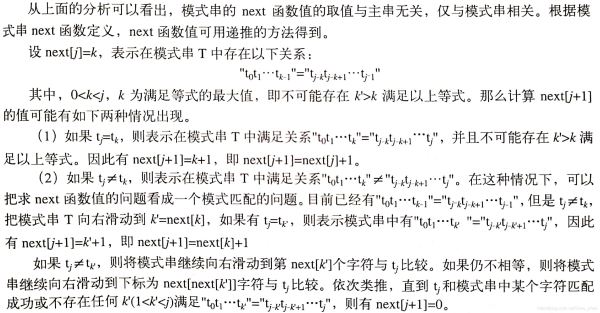 其实,求next数组的过程完全可以看成字符串匹配的过程,即以模式字符串为主字符串,以模式字符串的前缀为目标字符串,一旦字符串匹配成功,那么当前的next值就是匹配成功的字符串的长度。