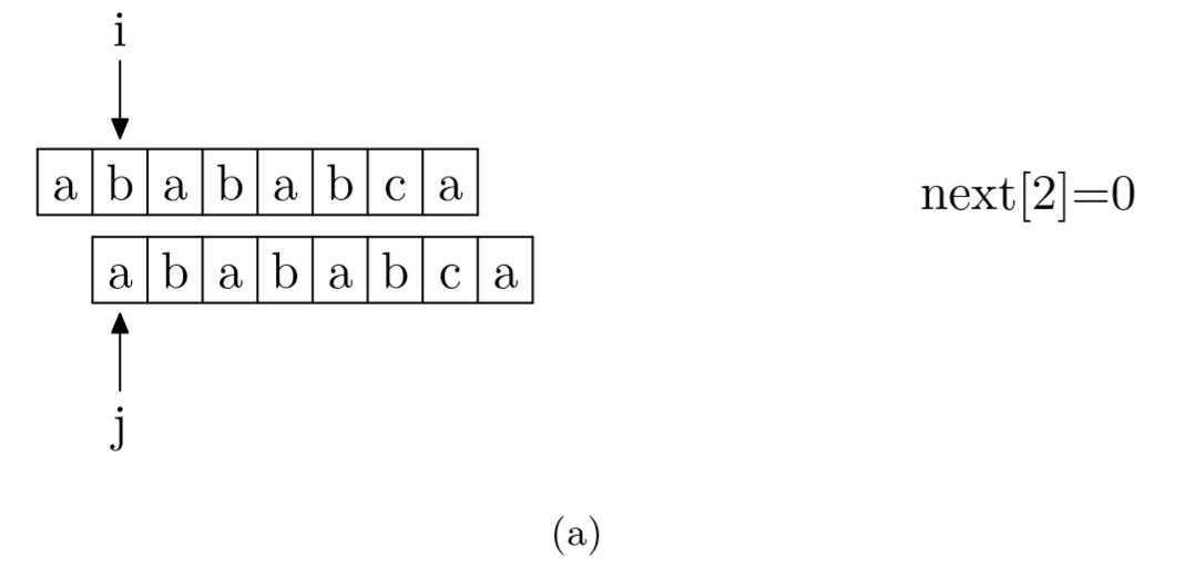 else k = next[k];//k回溯,即将第二个子串(右滑)(减小匹配的前缀长度)
