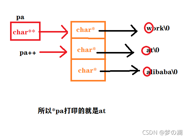 ②.定义一个二级指针存放的是字符指针数组元素的首地址