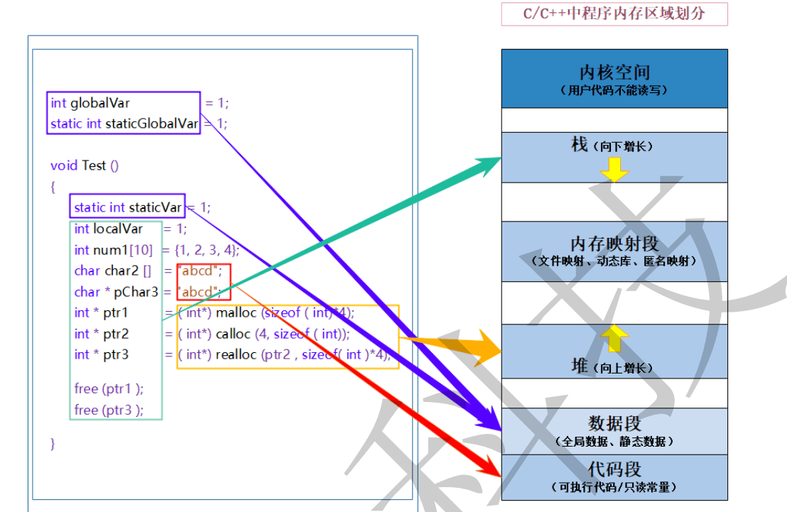 首先让我们熟悉一下计算机的内存吧!在计算机的系统中大致有这四个内存区域: