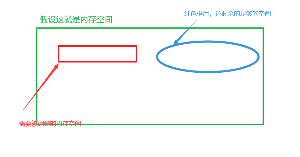 此时,如果我还想为红色框的内存空间进行扩大,此时红色框后面紧挨着的空间已经被其他程序所占用了,此时想开辟空间的话,只能将现在这块空间先释放掉(realloc会自动释放),再去其他大一点的地方进行开辟空间。