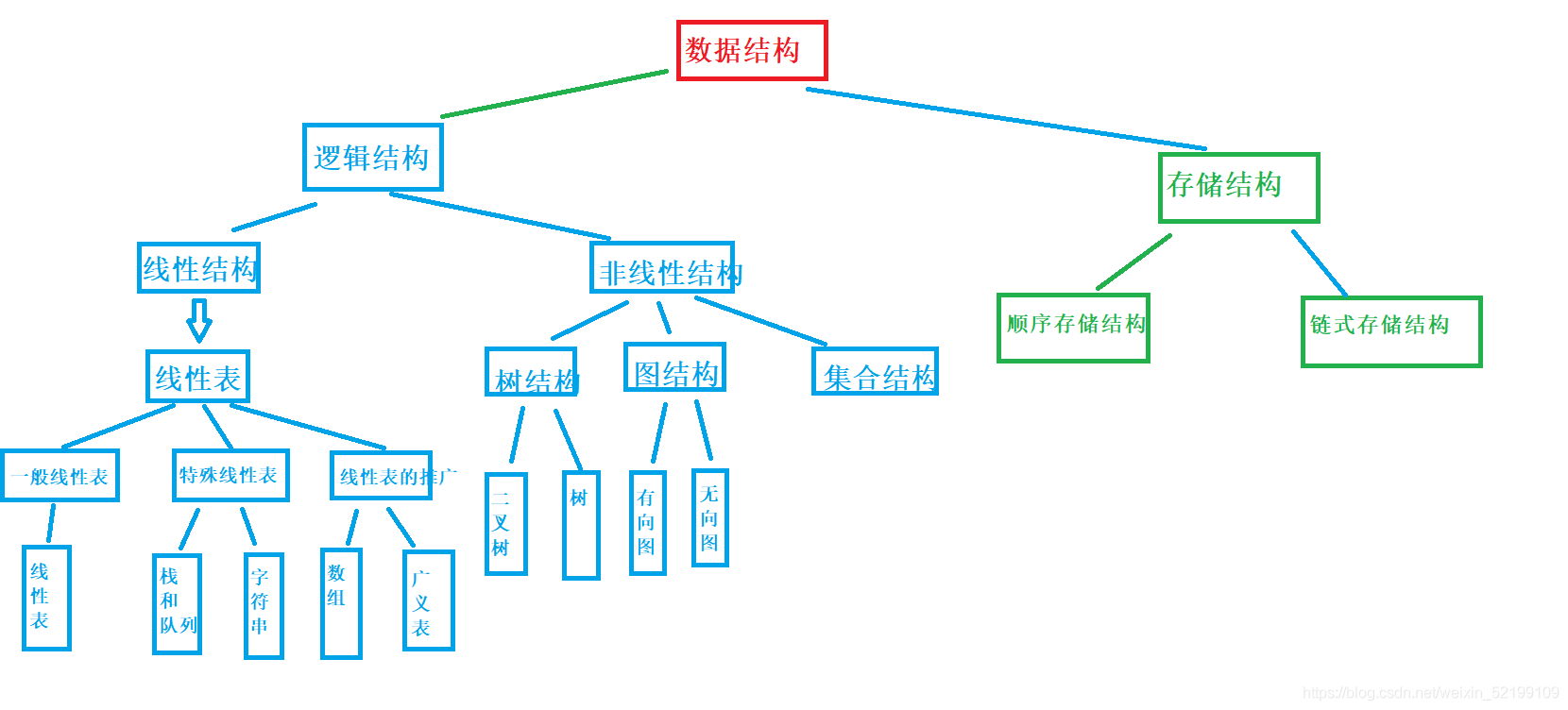 逻辑结构又分为线性结构和非线性结构,以上4种基本结构都属于非线性结构