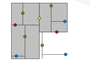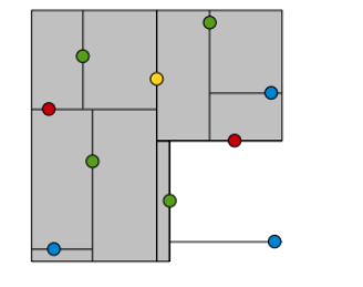 KDTree就是超平面都垂直于轴的BSPTree。同样的数据集,用KDTree划分之后就是这样: