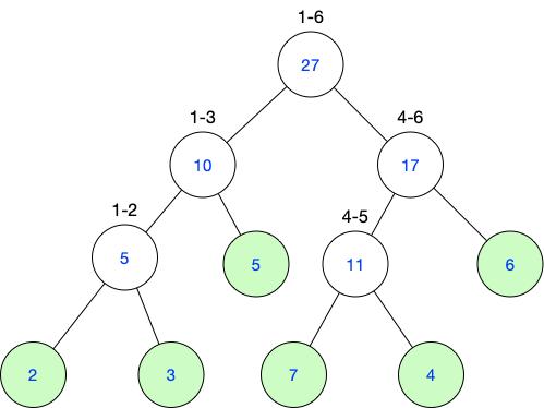 tree[root] = tree[leftroot] + tree[rightroot];