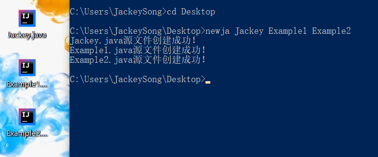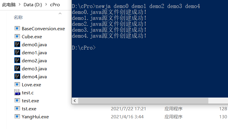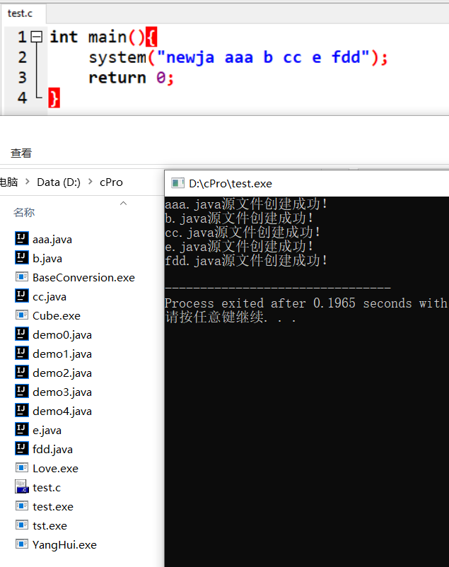 也可以写程序自动在命令行输入命令,调用newja这个程序,让它自动创建源文件: