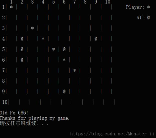以上就是欣喜大雁最近收集整理的关于C语言实现控制台五子棋小游戏的全部内容,更多相关C语言实现控制台五子棋小游戏内容请搜索靠谱客的其他文章。