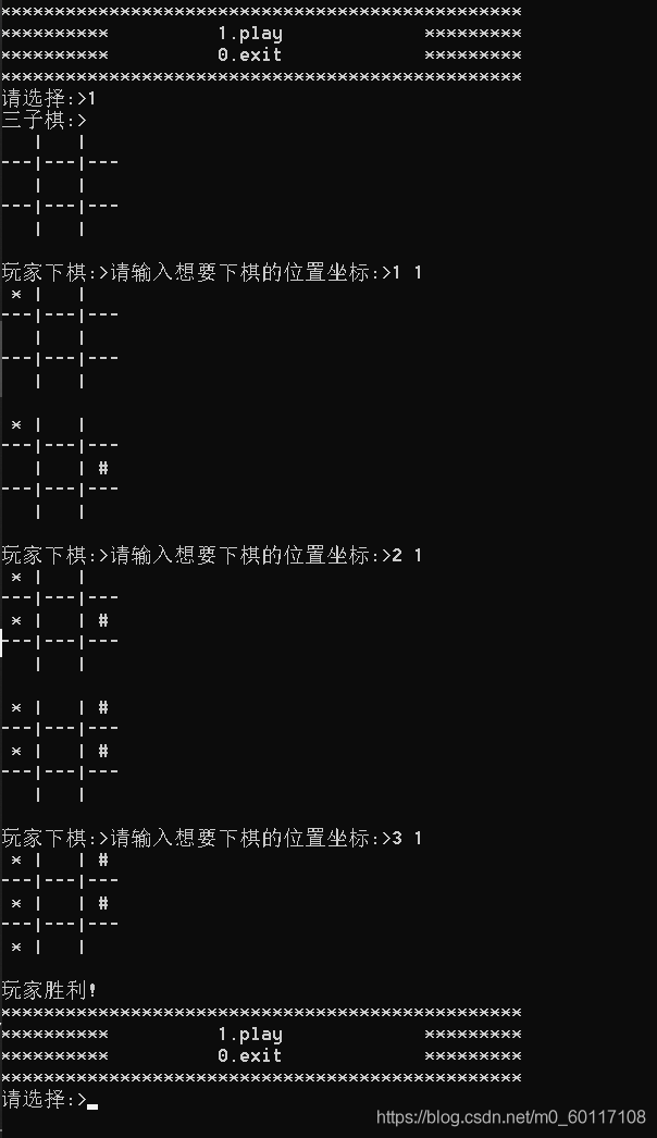 以上就是明理保温杯最近收集整理的关于C语言实现三子棋(井字棋)算法的全部内容,更多相关C语言实现三子棋(井字棋)算法内容请搜索靠谱客的其他文章。