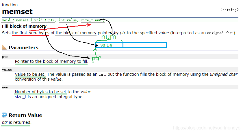 void * ( void * ptr, int value, size_t num );