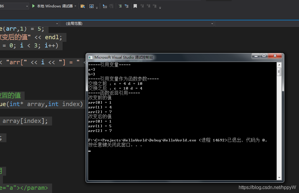 cout << "改变后的值" << endl;