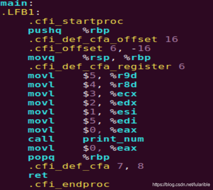 我们对比着看main函数与print_num函数中关于参数传递的部分: