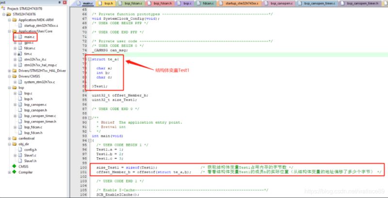 考虑到内存对齐的因素,想确定结构体里某个成员的实际位置,可以使用offsetof宏得到。比如我想得到成员b在结构体Test1的实际位置(包括内存对齐因素)。