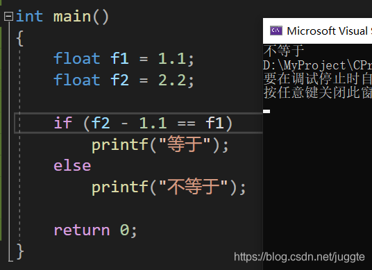 if (fabs(f2 - f1) < XXX_EPSILON) //fabs函数求绝对值,在math.h头文件中{相等;}