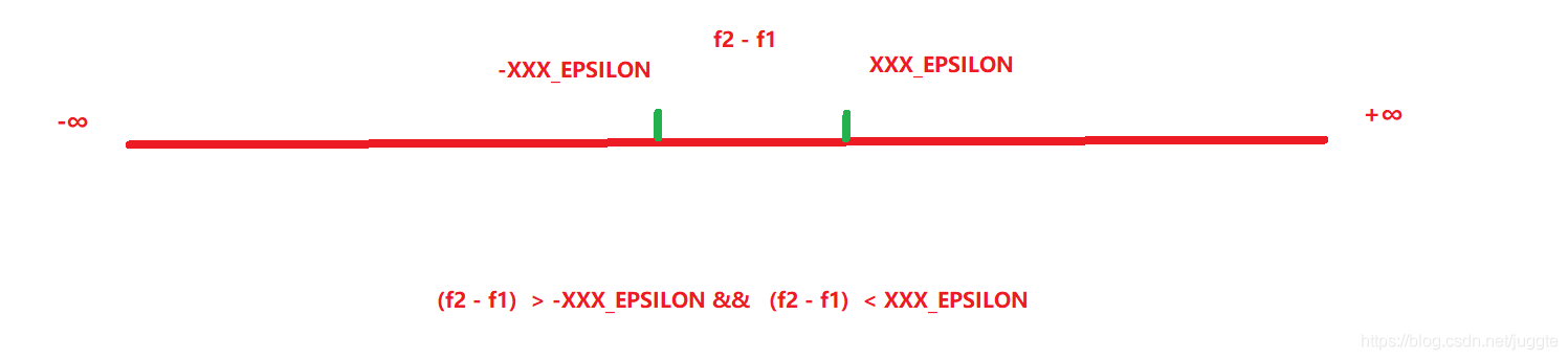 如图,它们的差值必须在 (-XXX_EPSILON,XXX_EPSILON) 这个区间内,才能说明它们相等。