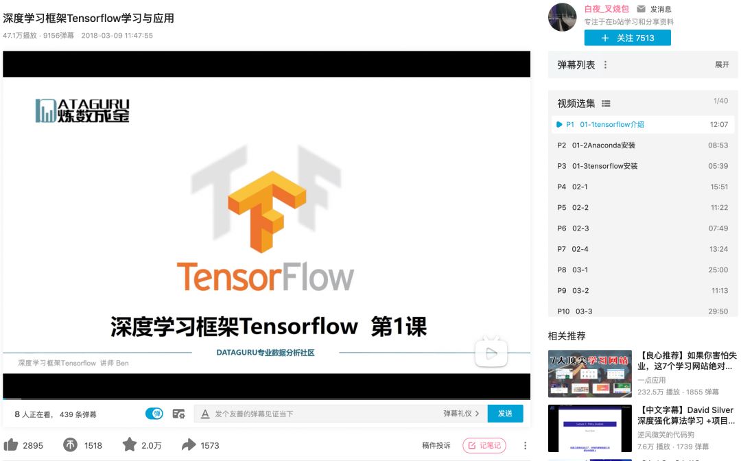 最新版的 Tensorflow 2.x 的视频没有,只找到了一个 1.x 的视频。