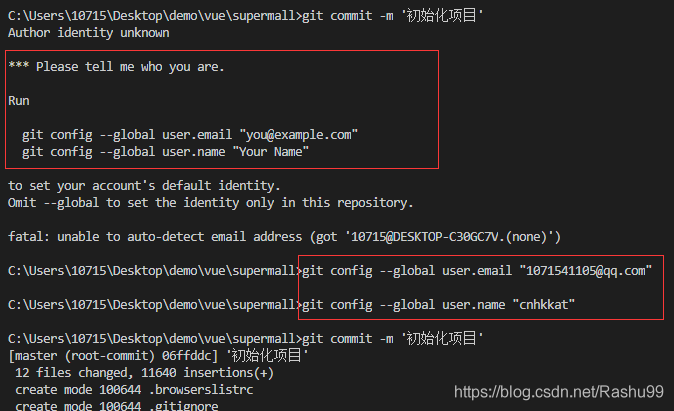 git commit -m '初始化项目' git remote add origin https://github.com/cnhkkat/vuedemomall.git git push -u origin master