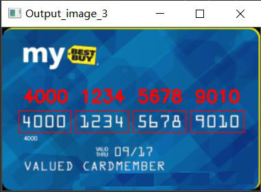 要求:识别出信用卡上的数字,并将其直接打印在原图片上。虽然看起来很蠢,但既然可以将数字打印在图片上,说明已经成功识别数字,因此也可以将其转换为数字文本保存。车牌号识别等项目的思路与此案例类似。