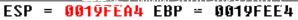 ESP = 0019FEF4