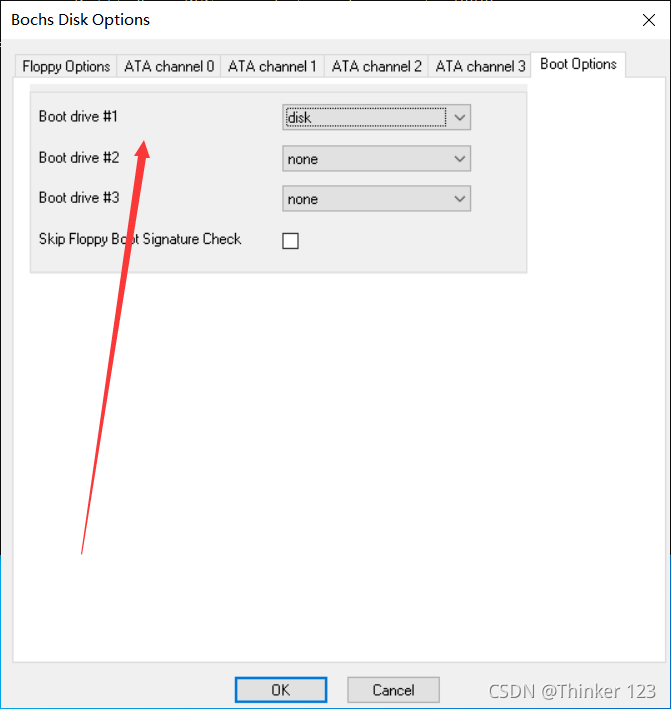 之后点击Boot Options中的boot drive设置为disk即可